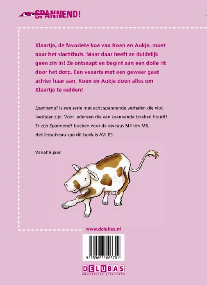 Klaartje, de favoriete koe van Koen en Aukje, moet naar het slachthuis. Maar daar heeft ze duidelijk geen zin in! Ze ontsnapt en begint aan een dolle rit door het dorp. Een veearts met een geweer gaat achter haar aan. Koen en Aukje doen alles om Klaartje te redden!