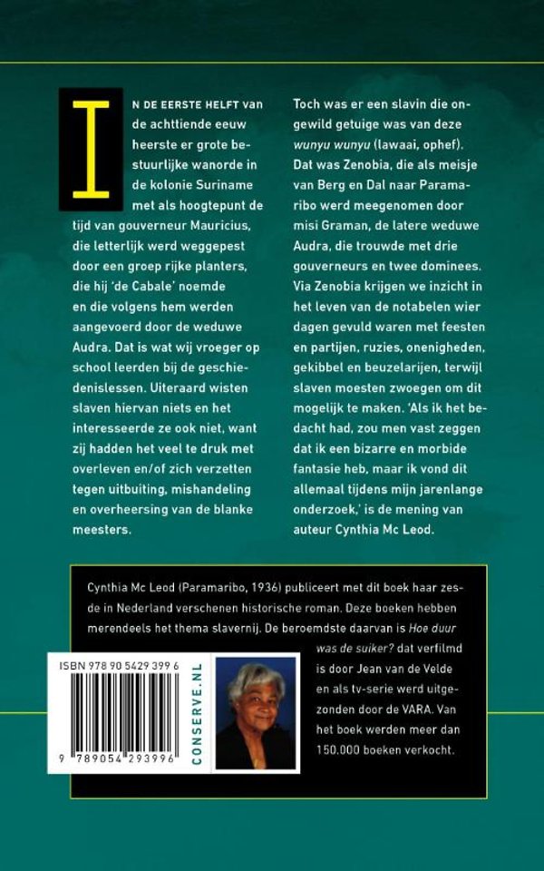 Dat is wat wij vroeger op school leerden bij de geschiedenislessen. Uiteraard wisten slaven hiervan niets en het interesseerde ze ook niet, want zij hadden het veel te druk met overleven en/of zich verzetten tegen uitbuiting, mishandeling en overheersing van de blanke meesters. Toch was er een slavin die ongewild getuige was van deze wunyu wunyu (lawaai, ophef). Dat was Zenobia, die als meisje van Berg en Dal naar Paramaribo werd meegenomen door misi Graman, de latere weduwe Audra, die trouwde met drie gouverneurs en twee dominees. Via Zenobia krijgen we inzicht in het leven van de notabelen wier dagen gevuld waren met feesten en partijen, ruzies, onenigheden, gekibbel en beuzelarijen, terwijl slaven moesten zwoegen om dit mogelijk te maken.