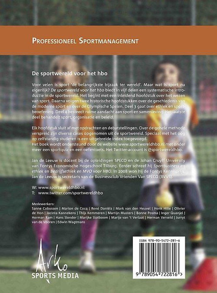 Voor velen is sport 'de belangrijkste bijzaak ter wereld'. Maar wat is sport nu eigenlijk? De sportwereld voor het hbo biedt in vijf delen een systematische intro- ductie in de sportwereld. Het begint met een inleidend hoofdstuk over het wezen van sport. Daarna volgen twee historische hoofdstukken over de geschiedenis van de moderne sport en over de Olympische Spelen. Deel 3 gaat over ethiek en sport beoefening. Deel 4 besteedt ruime aandacht aan sport en samenleving. Het laatste deel behandelt sport, organisatie en beleid.Elk hoofdstuk sluit af met opdrachten en debatstellingen. Over de gehele methode verspreid zijn diverse cases opgenomen uit de sportwereld. Speciaal met het oog op zelfstandig studeren is een uitgebreide index toegevoegd. Het boek wordt ondersteund door de website www.sportwereldhbo.nl met onder meer een sportquiz en een oefentoets. Het Twitter-account is @sportwereldhbo.Jan de Leeuw is docent bij de opleidingen SPECO en de Johan Cruyff University van Fontys Economische Hogeschool Tilburg. Eerder schreef hij Sportbusiness en ethiek en Bedrijfsethiek en MVO voor HBO. In 2008 won hij de Fontys Kennisprijs. Jan de Leeuw is secretaris van de Businessclub Vrienden Van SPECO (BVVS).