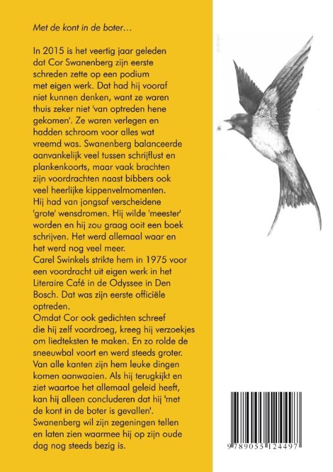 Omdat Cor ook gedichten schreef die hij zelf voordroeg, kreeg hij verzoekjes om liedteksten te maken. En zo rolde de sneeuwbal voort en werd steeds groter. Van alle kanten zijn hem leuke dingen komen aanwaaien. Als hij terugkijkt en ziet waartoe het allemaal geleid heeft, kan hij alleen concluderen dat hij 'met de kont in de boter is gevallen'. Swanenberg wil zijn zegeningen tellen en laten zien waarmee hij op zijn oude dag nog steeds bezig is.