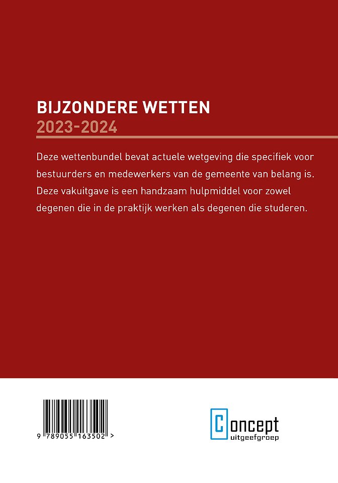 Deze wettekstenbundel bevat actuele wetgeving, met betrekking tot Bijzondere wetten.