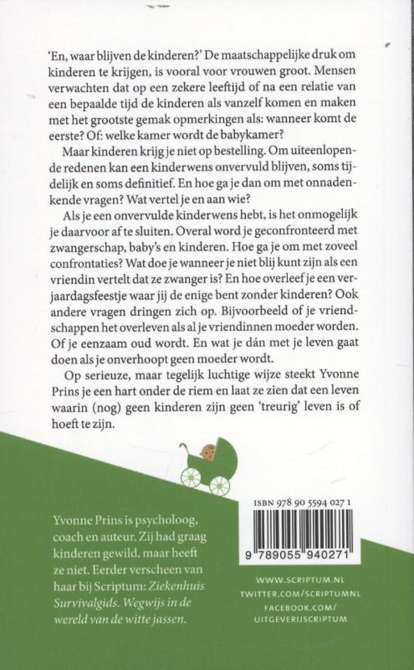 Op serieuze, maar tegelijk luchtige wijze steekt Yvonne Prins je een hart onder de riem en laat ze zien dat een leven waarin (nog) geen kinderen zijn geen 'treurig' leven is of hoeft te zijn.