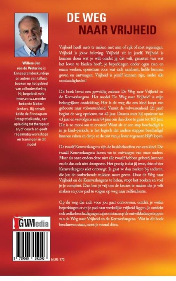 Op de weg die zich voor jou gaat ontvouwen, ontdek je welke beperkingen er op je pad naar werkelijke vrijheid liggen. Je ontdekt ook welke beschadigingen zijn ontstaan op de ontwikkelingsstappen naar de Weg naar Vrijheid en de Kernverlangens. Wat in dit boek beschreven staat, moet je vooral dóen.
