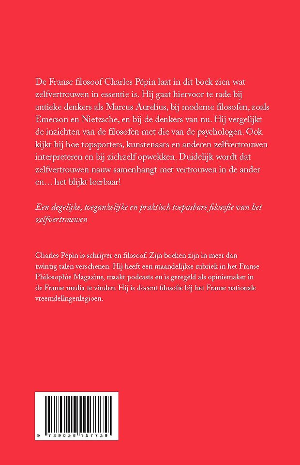 De Franse filosoof Charles Pépin laat in dit boek zien wat zelfvertrouwen in essentie is. Hij gaat hiervoor te rade bij antieke denkers als Marcus Aurelius, bij moderne filosofen, zoals Emerson en Nietzsche, en bij de denkers van nu. Hij vergelijkt de inzichten van de filosofen met die van de psychologen. Ook kijkt hij hoe topsporters, kunstenaars en anderen zelfvertrouwen interpreteren en bij zichzelf opwekken. Duidelijk wordt dat zelfvertrouwen nauw samenhangt met vertrouwen in de ander en … het blijkt leerbaar!