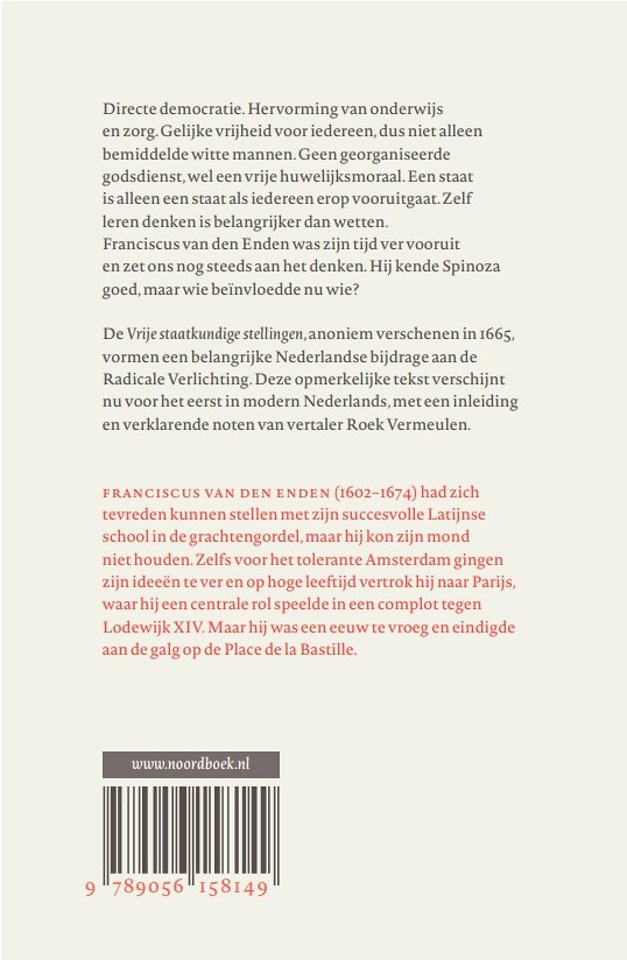 De Vrije staatkundige stellingen, anoniem verschenen in 1665, vormen een belangrijke Nederlandse bijdrage aan de Radicale Verlichting. Deze opmerkelijke tekst verschijnt nu voor het eerst in modern Nederlands, met een inleiding en verklarende noten van vertaler C.L. Vermeulen.