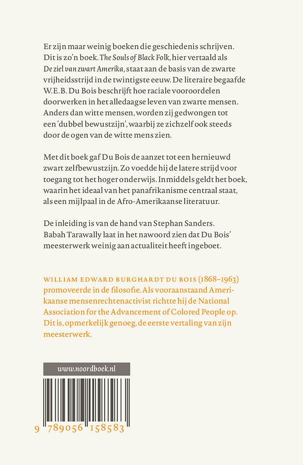 William Edward Burghardt Du Bois (1868–1963) promoveerde in de filosofie. Als vooraanstaand Amerikaanse mensenrechtenactivist richtte hij de National Association for the Advancement of Colored People op. Dit is, opmerkelijk genoeg, de eerste vertaling van zijn meesterwerk.