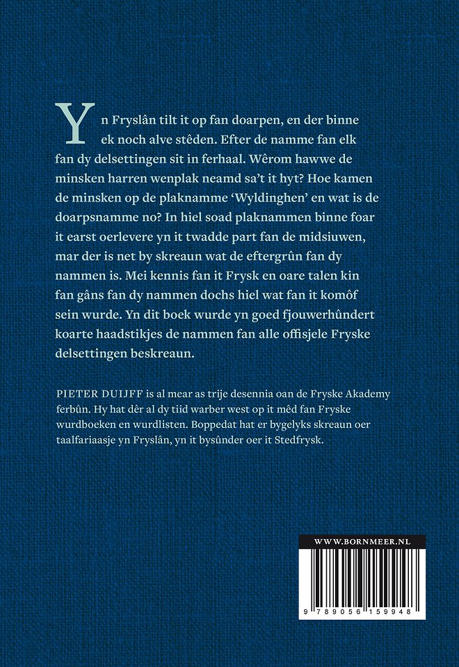 Yn Fryslân tilt it op fan doarpen, en der binne ek noch alve stêden. Efter de namme fan elk fan dy delsettingen sit in ferhaal. Wêrom hawwe de minsken harren wenplak neamd sa’t it hyt? Hoe kamen de minsken op de plaknamme ‘Wyldinghen’ en wat is de doarpsnamme no? In hiel soad plaknammen binne foar it earst oerlevere yn it twadde part fan de midsiuwen, mar der is net by skreaun wat de eftergrûn fan dy nammen is. Mei kennis fan it Frysk en oare talen kin fan gâns fan dy nammen dochs hiel wat fan it komôf sein wurde. Yn dit boek wurde yn goed fjouwerhûndert koarte haadstikjes de nammen fan alle offisjele Fryske delsettingen beskreaun.