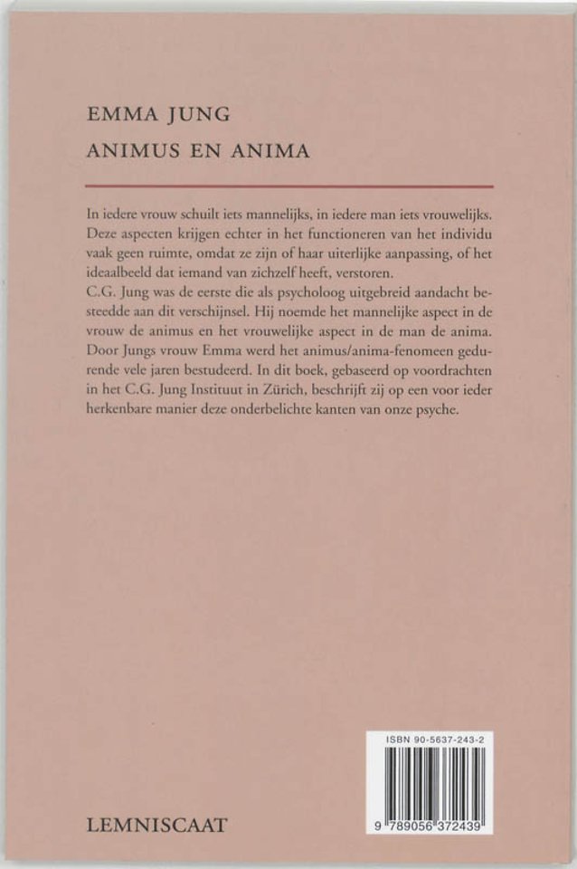 C.G. Jung noemde het mannelijke aspect van de vrouw de animus en het vrouwelijke van de man de anima. Zijn vrouw Emma heeft het fenomeen animus/anima jarenlang bestudeerd. Haar heldere, toegankelijke beschrijving maakt animus en anima voor de lezer tot herkenbare realiteiten.