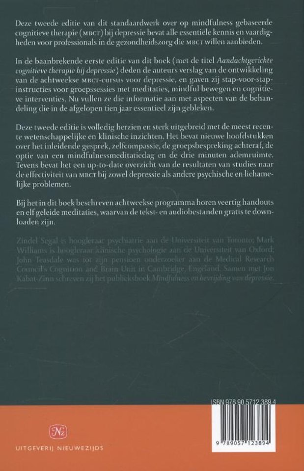 In de baanbrekende eerste editie van dit boek (met de titel Aandachtgerichte cognitieve therapie bij depressie) deden de auteurs verslag van de ontwikkeling van de achtweekse MBCT-cursus voor depressie, en gaven zij stap-voor-stap-instructies voor groepssessies met meditaties, mindful bewegen en cognitieve interventies. Nu vullen ze die informatie aan met aspecten van de behandeling die in de afgelopen tien jaar essentieel zijn gebleken.