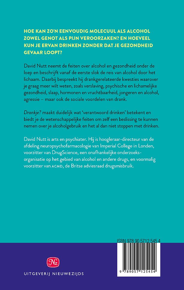 David Nutt neemt de feiten over alcohol en gezondheid onder de loep en beschrijft vanaf de eerste slok de reis van alcohol door het lichaam. Daarbij bespreekt hij drankgerelateerde kwesties waarover je graag meer wilt weten, zoals verslaving, psychische en lichamelijke gezondheid, slaap, hormonen en vruchtbaarheid, jongeren en alcohol, agressie – maar ook de sociale voordelen van drank.