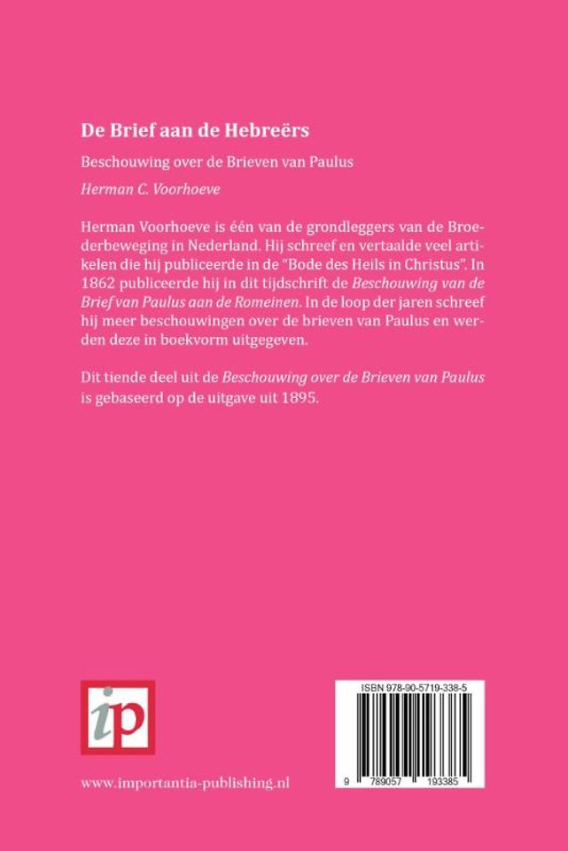 Herman Voorhoeve is één van de grondleggers van de Broederbeweging in Nederland. Hij schreef en vertaalde veel artikelen die hij publiceerde in de "Bode des Heils in Christus". In 1862 publiceerde hij in dit tijdschrift de Beschouwing van de Brief van Paulus aan de Romeinen. In de loop der jaren schreef hij meer beschouwingen over de brieven van Paulus en werden deze in boekvorm uitgegeven.