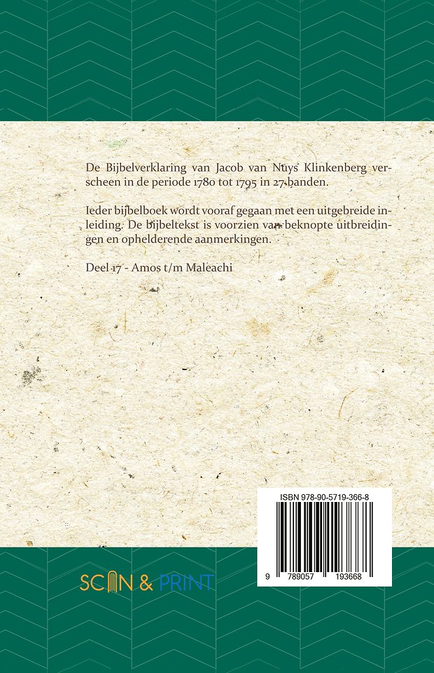 De Bijbelverklaring van Jacob van Nuys Klinkenberg verscheen in de periode 1780 tot 1795 in 27 banden.