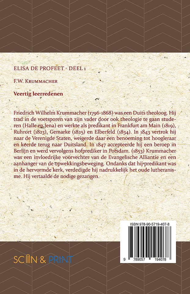 Friedrich Wilhelm Krummacher (1796-1868) was een Duits theoloog. Hij trad in de voetsporen van zijn vader door ook theologie te gaan studeren (Halle en Jena) en werkte als predikant in Frankfurt am Main (1819), Ruhrort (1823), Gemarke (1825) en Elberfeld (1834). In 1843 vertrok hij naar de Verenigde Staten, weigerde daar een benoeming tot hoogleraar en keerde terug naar Duitsland. In 1847 accepteerde hij een beroep in Berlijn en werd vervolgens hofprediker in Potsdam. (1853) Krummacher was een invloedrijke voorvechter van de Evangelische Alliantie en een aanhanger van de opwekkingsbeweging. Ondanks dat hij predikant was in de hervormde kerk, verdedigde hij nadrukkelijk het oude lutheranisme. Hij vertaalde de nodige gezangen.
