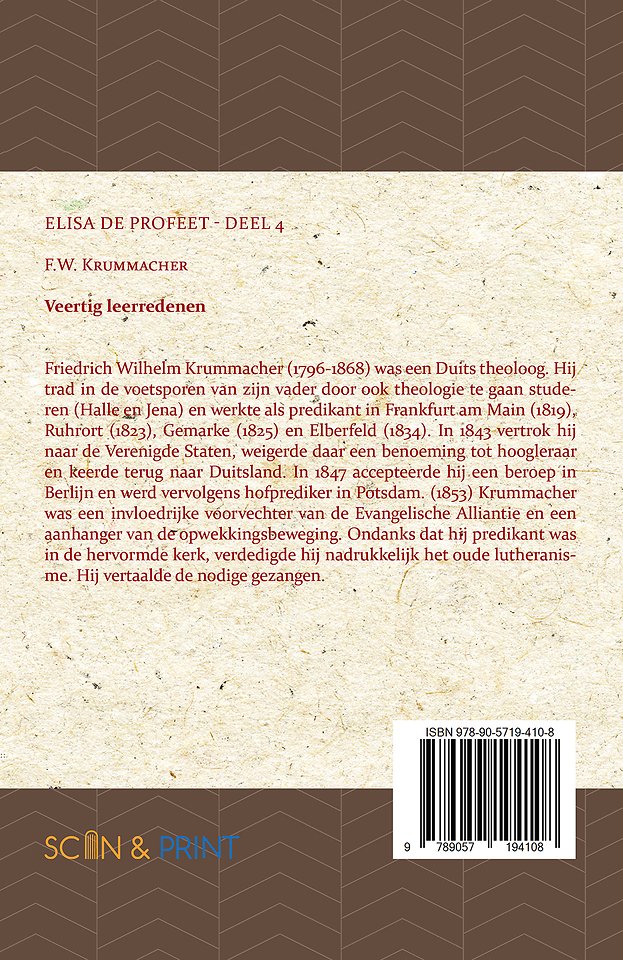 Friedrich Wilhelm Krummacher (1796-1868) was een Duits theoloog. Hij trad in de voetsporen van zijn vader door ook theologie te gaan studeren (Halle en Jena) en werkte als predikant in Frankfurt am Main (1819), Ruhrort (1823), Gemarke (1825) en Elberfeld (1834). In 1843 vertrok hij naar de Verenigde Staten, weigerde daar een benoeming tot hoogleraar en keerde terug naar Duitsland. In 1847 accepteerde hij een beroep in Berlijn en werd vervolgens hofprediker in Potsdam. (1853) Krummacher was een invloedrijke voorvechter van de Evangelische Alliantie en een aanhanger van de opwekkingsbeweging. Ondanks dat hij predikant was in de hervormde kerk, verdedigde hij nadrukkelijk het oude lutheranisme. Hij vertaalde de nodige gezangen.