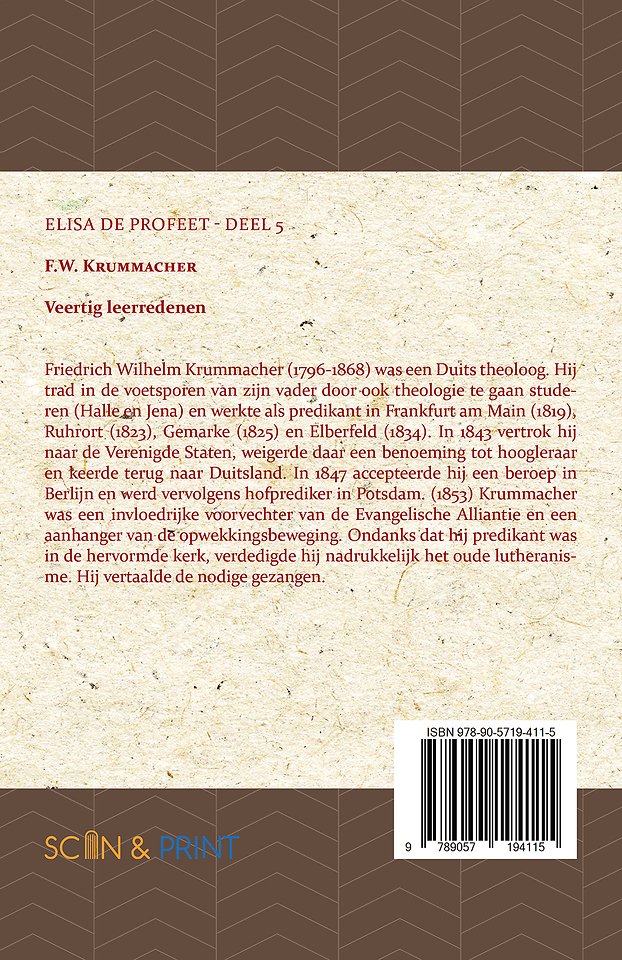 Friedrich Wilhelm Krummacher (1796-1868) was een Duits theoloog. Hij trad in de voetsporen van zijn vader door ook theologie te gaan studeren (Halle en Jena) en werkte als predikant in Frankfurt am Main (1819), Ruhrort (1823), Gemarke (1825) en Elberfeld (1834). In 1843 vertrok hij naar de Verenigde Staten, weigerde daar een benoeming tot hoogleraar en keerde terug naar Duitsland. In 1847 accepteerde hij een beroep in Berlijn en werd vervolgens hofprediker in Potsdam. (1853) Krummacher was een invloedrijke voorvechter van de Evangelische Alliantie en een aanhanger van de opwekkingsbeweging. Ondanks dat hij predikant was in de hervormde kerk, verdedigde hij nadrukkelijk het oude lutheranisme. Hij vertaalde de nodige gezangen.