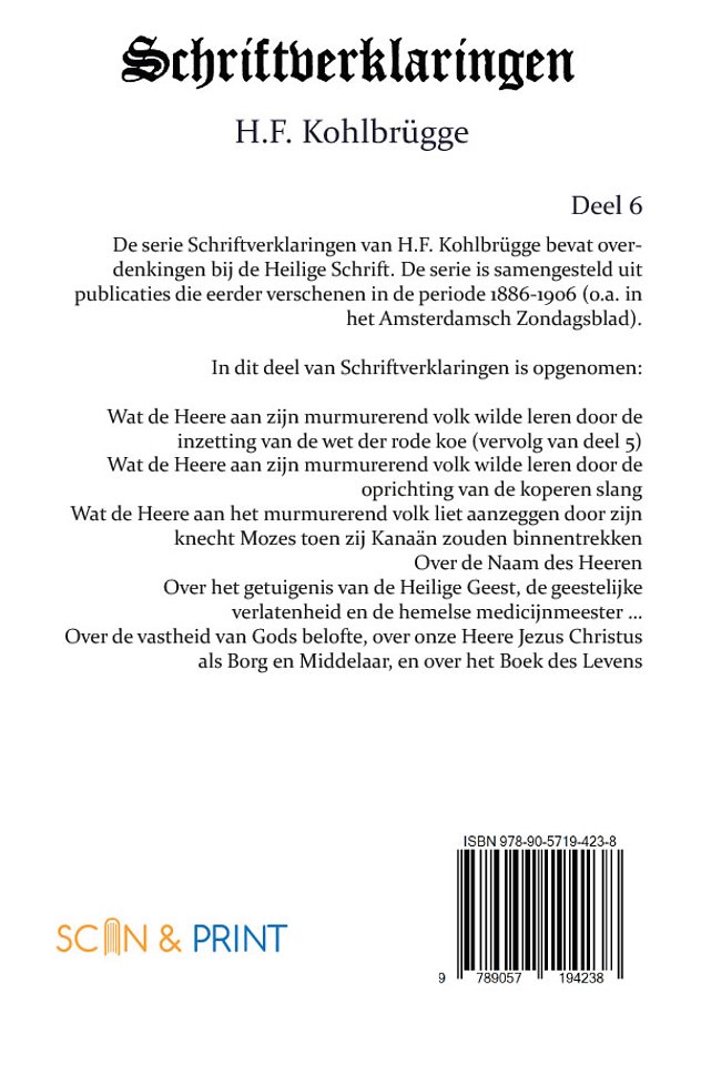 De serie Schriftverklaringen van H.F. Kohlbrügge bevat overdenkingen bij de Heilige Schrift. De serie is samengesteld uit publicaties die eerder verschenen in de periode 1886-1906 (o.a. in het Amsterdamsch Zondagsblad).