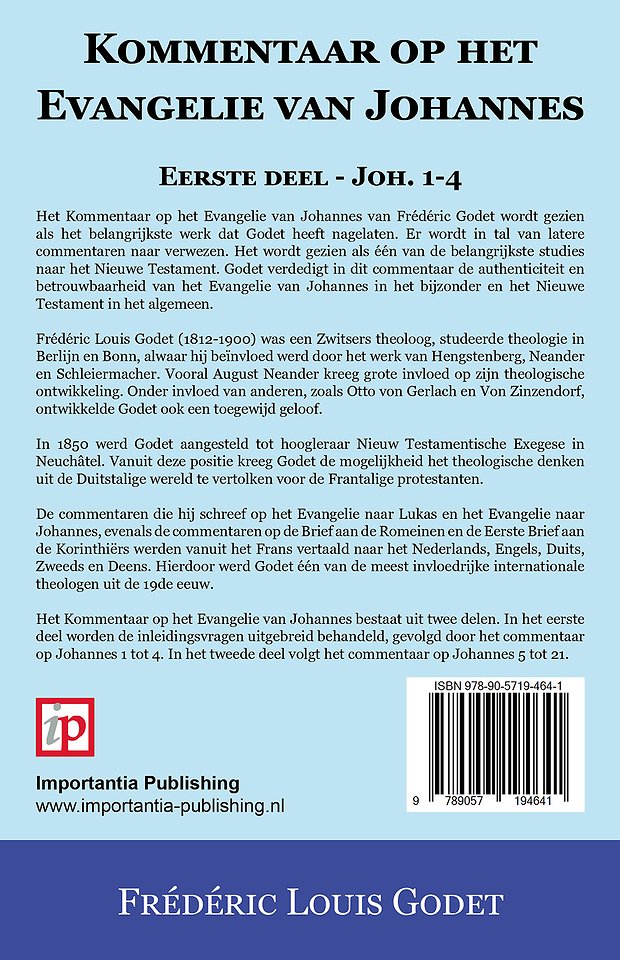 Het Kommentaar op het Evangelie van Johannes van Frédéric Godet wordt gezien als het belangrijkste werk dat Godet heeft nagelaten. Er wordt in tal van latere commentaren naar verwezen. Het wordt gezien als één van de belangrijkste studies naar het Nieuwe Testament. Godet verdedigt in dit commentaar de authenticiteit en betrouwbaarheid van het Evangelie van Johannes in het bijzonder en het Nieuwe Testament in het algemeen.
