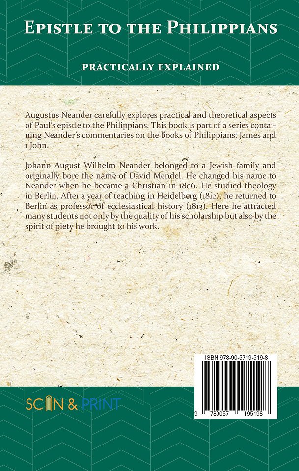Augustus Neander carefully explores practical and theoretical aspects of Paul's epistle to the Philippians. This book is part of a series containing Neander's commentaries on the books of Philippians. James and 1 John.