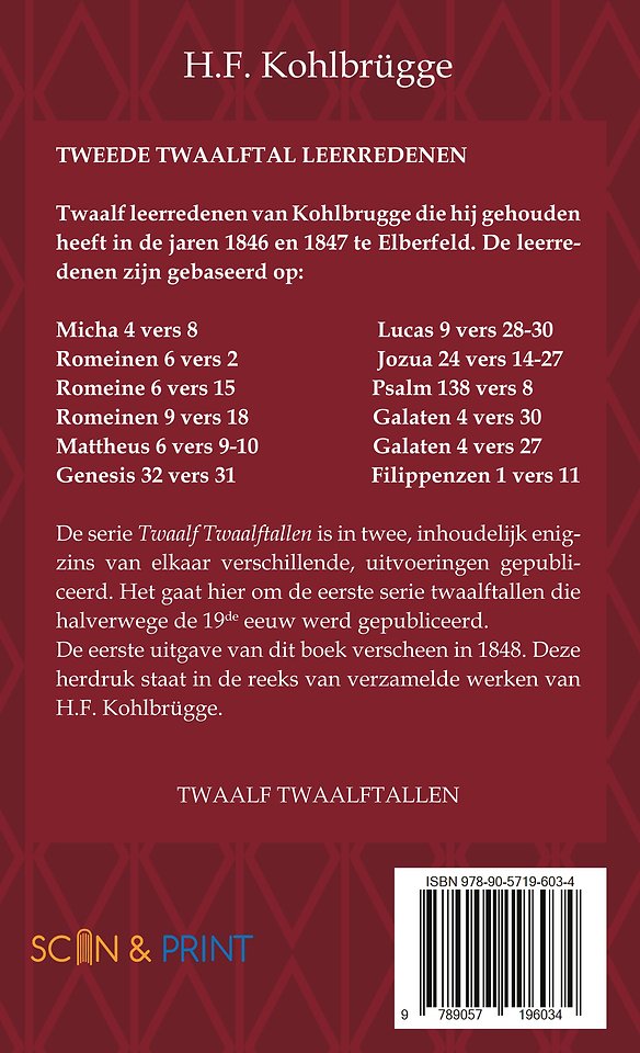 Twaalf leerredenen van Kohlbrugge die hij gehouden heeft in de jaren 1846 en 1847 te Elberfeld. De leerredenen zijn gebaseerd op: