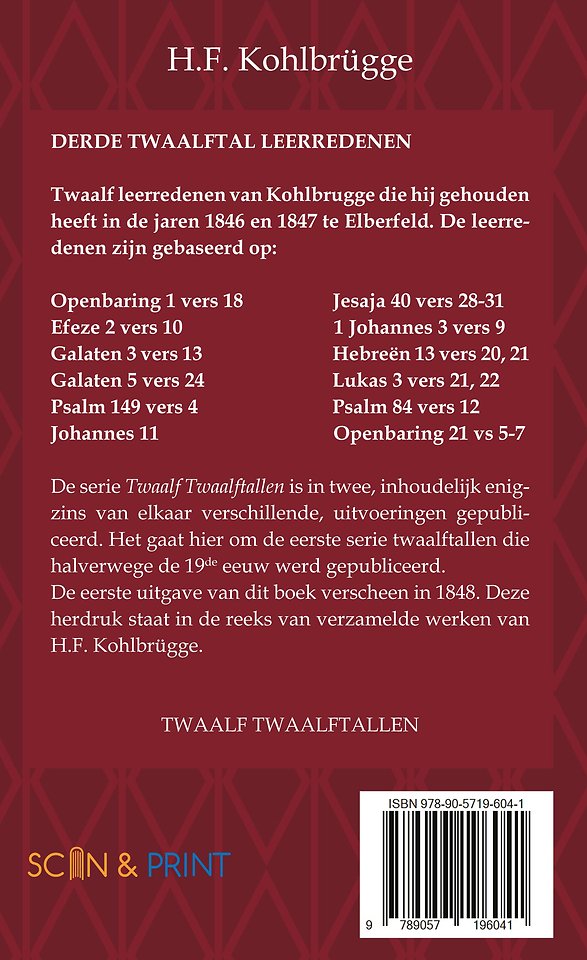Twaalf leerredenen van Kohlbrugge die hij gehouden heeft in de jaren 1846 en 1847 te Elberfeld. De leerredenen zijn gebaseerd op: