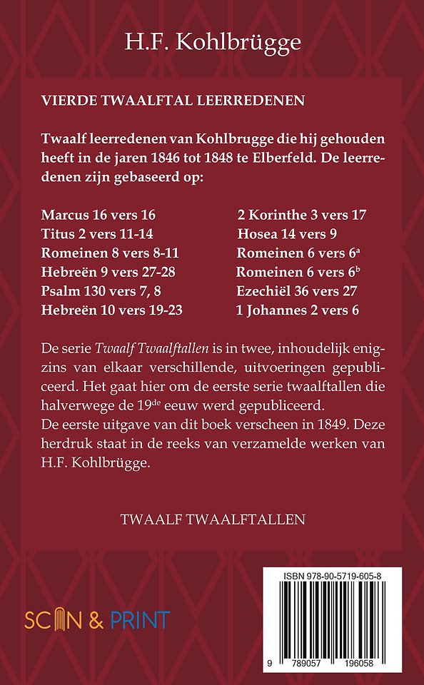 Twaalf leerredenen van Kohlbrugge die hij gehouden heeft in de jaren 1846 tot 1848 te Elberfeld. De leerredenen zijn gebaseerd op: