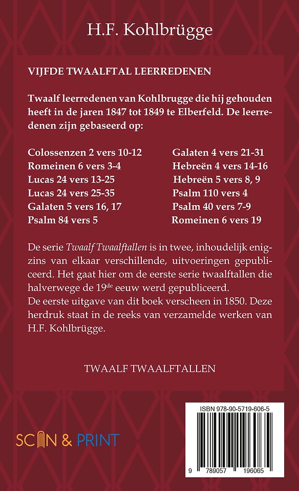 Twaalf leerredenen van Kohlbrugge die hij gehouden heeft in de jaren 1847 tot 1849 te Elberfeld. De leerredenen zijn gebaseerd op: