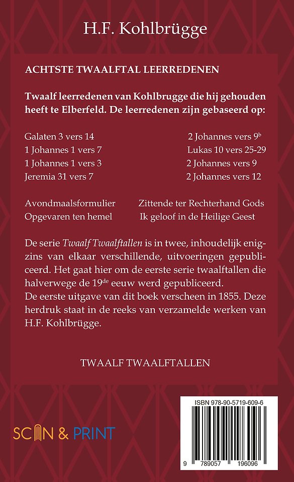Twaalf leerredenen van Kohlbrugge die hij gehouden heeft te Elberfeld. De leerredenen zijn gebaseerd op: