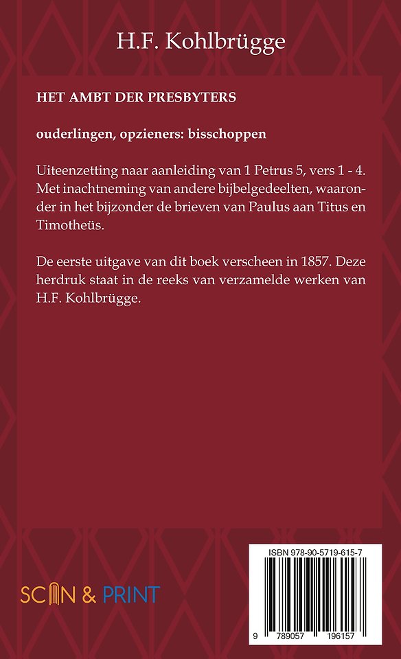 De eerste uitgave van dit boek verscheen in 1857. Deze herdruk staat in de reeks van verzamelde werken van H.F. Kohlbrügge.