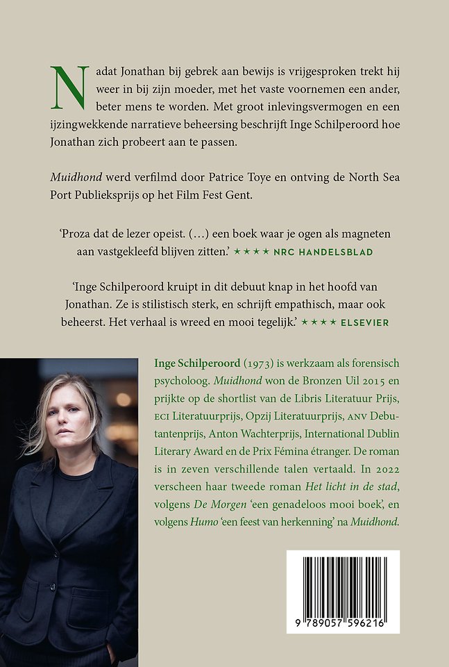 Inge Schilperoord (1973) publiceerde in NRC Handelsblad, Psychologie Magazine en Crossing Border Magazine. Ze werkt als forensisch psycholoog bij onder andere het Pieter Baan Centrum. Van haar debuut Muidhond werden deze zomer de Franse, Engelse en Turkse vertaalrechten verkocht, evenals de filmrechten. Het boek won de Bronzen Uil 2015 en stond op de shortlist van de ECI Literatuurprijs.