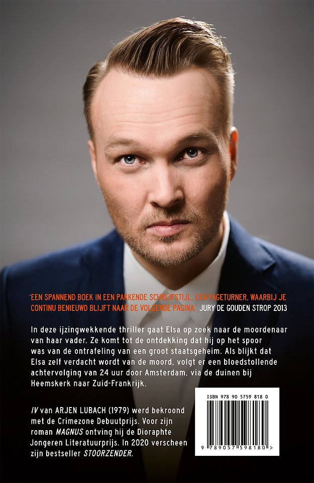 Arjen Lubach, bekend van onder andere zijn geprezen roman Magnus, schreef met IV zijn thrillerdebuut. De pers was unaniem lovend. IV werd genomineerd voor De Gouden Strop en bekroond met de Crimezone Debuutprijs.
