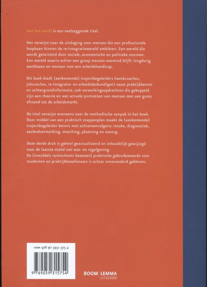 'Aan het werk!' is een veelzeggende titel. Hij verwijst naar de uitdaging voor mensen die een professionele loopbaan binnen de re-integratiewereld ambiëren. Een wereld die wordt geteisterd door sociale, economische en politieke stormen. Een wereld waarin echter een groep mensen overeind blijft: langdurig werklozen en mensen met een arbeidshandicap.