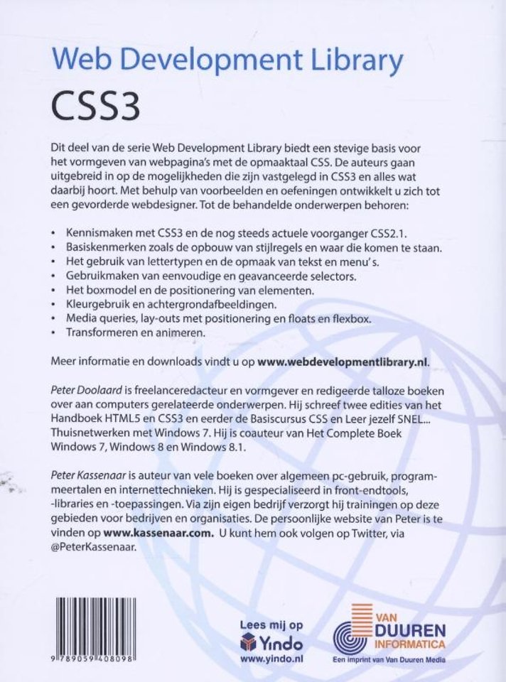 Dit deel van de serie Web Development Library biedt een stevige basis voor het vormgeven van webpagina’s met de opmaaktaal CSS. De auteurs gaan uitgebreid in op de mogelijkheden die zijn vastgelegd in CSS3 en alles wat daarbij hoort. Met behulp van voorbeelden en oefeningen ontwikkelt u zich tot een gevorderde webdesigner.