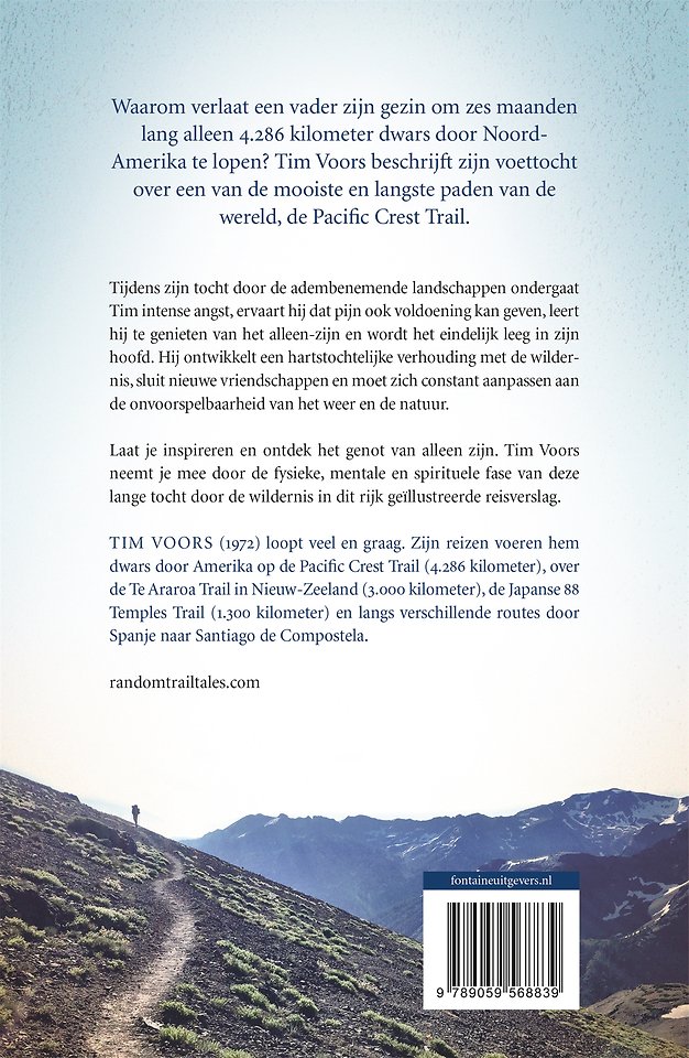 Waarom verlaat een vader zijn gezin om zes maanden lang alleen 4286 kilometer dwars door Amerika te lopen? Tim Voors beschrijft zijn voettocht over de Pacific Crest Trail van Mexico naar Canada.