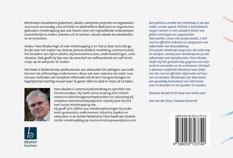 Meer over Hans BuskesMindmaps visualiseren gedachten, ideeën, complexe projecten en organisatiestructuren eenvoudig, overzichtelijk en doeltreffend. Bedrijven en organisaties gebruiken mindmapping dan ook steeds meer om ingewikkelde onderwerpen overzichtelijk te maken, plannen uit te werken, nieuwe ideeën te ontwikkelen en te innoveren.