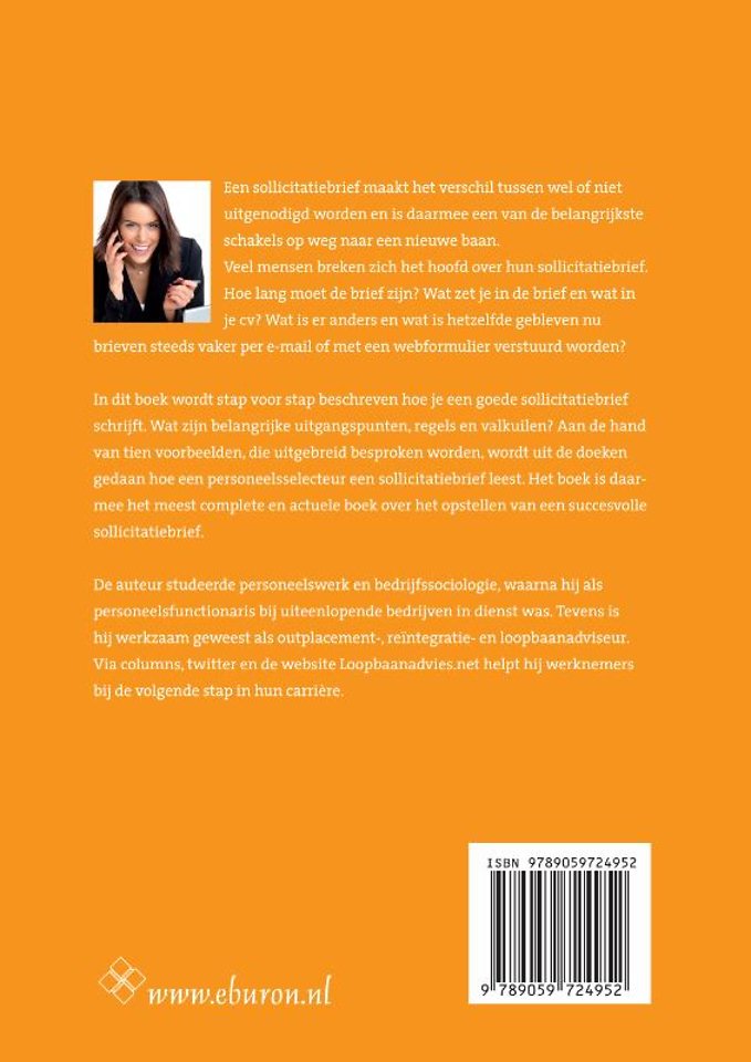 In dit boek wordt stap voor stap beschreven hoe u een goede sollicitatiebrief schrijft. Wat zijn belangrijke uitgangspunten, regels en valkuilen? Aan de hand van tien voorbeelden, die uitgebreid besproken worden, wordt uit de doeken gedaan hoe een personeelsselecteur een sollicitatiebrief leest. Het boek is daarmee het meest complete en actuele boek over het opstellen van een succesvolle sollicitatiebrief.