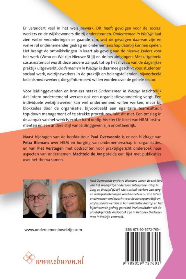 Er verandert veel in het welzijnswerk. Dit heeft gevolgen voor de sociaal werkers en de wijkbewoners die zij ondersteunen. 'Ondernemen in Welzijn' laat zien welke veranderingen er gaande zijn, wat de gevolgen daarvan zijn en welke rol ondernemender gedrag en ondernemerschap daarbij kunnen spelen. Het brengt de ontwikkelingen in kaart als gevolg van de nieuwe kaders voor het werk (Wmo en Welzijn Nieuwe Stijl) en de bezuinigingen. Met uitgebreid casusmateriaal wordt deze andere aanpak tot op het niveau van de dagelijkse praktijk uitgewerkt. 'Ondernemen in Welzijn' is daarmee geschikt voor studenten sociaal werk, welzijnswerkers in de praktijk en belangstellenden, bijvoorbeeld beleidsmedewerkers, die geïnformeerd willen worden over de gehele sector.