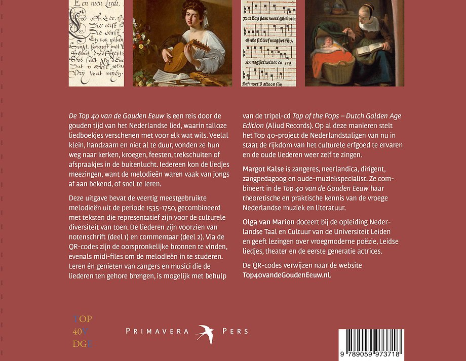 Margot Kalse is zangeres, neerlandica, dirigent, zangpedagoog en oude-muziekspecialist. Ze combineert in de Top 40 van de Gouden Eeuw haar theoretische en praktische kennis van de vroege Nederlandse muziek en literatuur.Olga van Marion doceert bij de opleiding NederlandseTaal en Cultuur van de Universiteit Leiden en geeft lezingen over vroegmoderne poëzie, Leidse liedjes, theater en de eerste generatie actrices.