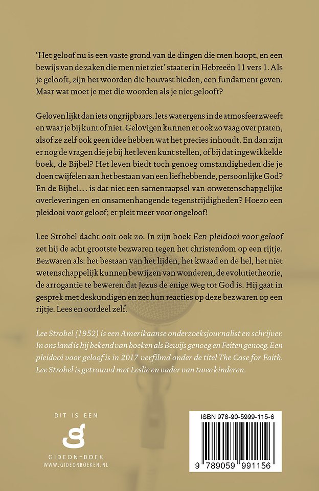 Lee Strobel schreef ook de bestsellers Bewijs genoeg (over de historische bewijzen voor het leven van Jezus Christus) en Feiten genoeg (over de wetenschappelijke bewijzen voor het geloof in de schepping en de Schepper).