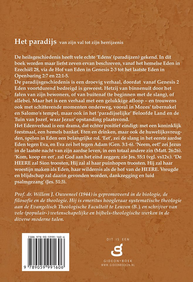 De heilsgeschiedenis heeft vele echte ‘Edens’ (paradijzen) gekend. In dit boek worden maar liefst zeven ervan beschreven, vanaf het hemelse Eden in Ezechiël 28, via de Hof van Eden in Genesis 2-3 tot het laatste Eden in Openbaring 2:7 en 22:1-5.