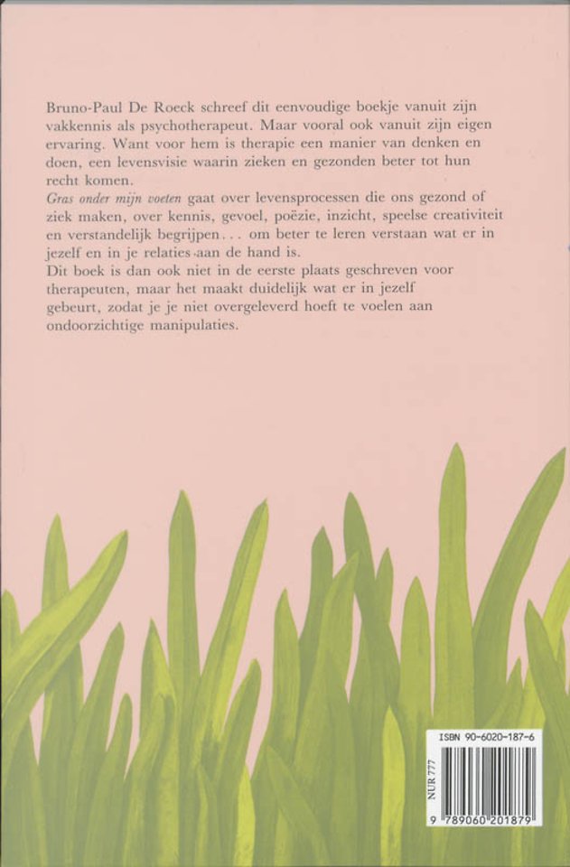 Bruno-Paul De Roeck schreef dit eenvoudige boek vanuit zijn vakkennis van psychotherapeut. Maar vooral ook vanuit zijn eigen ervaring. Want voor hem is therapie een manier van denken en doen, een levensvisie waarin zieken en gezonden beter tot hun recht komen. Gras onder mijn voeten gaat over levensprocessen die ons gezond of ziek maken, over kennis, gevoel, poëzie, inzicht, speelse creativiteit en verstandelijk begrijpen... om beter te leren verstaan wat er in jezelf en in je relaties aan de hand is, kortom, het gaat over Gestalt. Dit boek is niet in de eerste plaats geschreven voor therapeuten, maar het maakt duidelijk wat er in jezelf gebeurt, zodat je je niet overgeleverd hoeft te voelen aan ondoorzichtige manipulaties.
