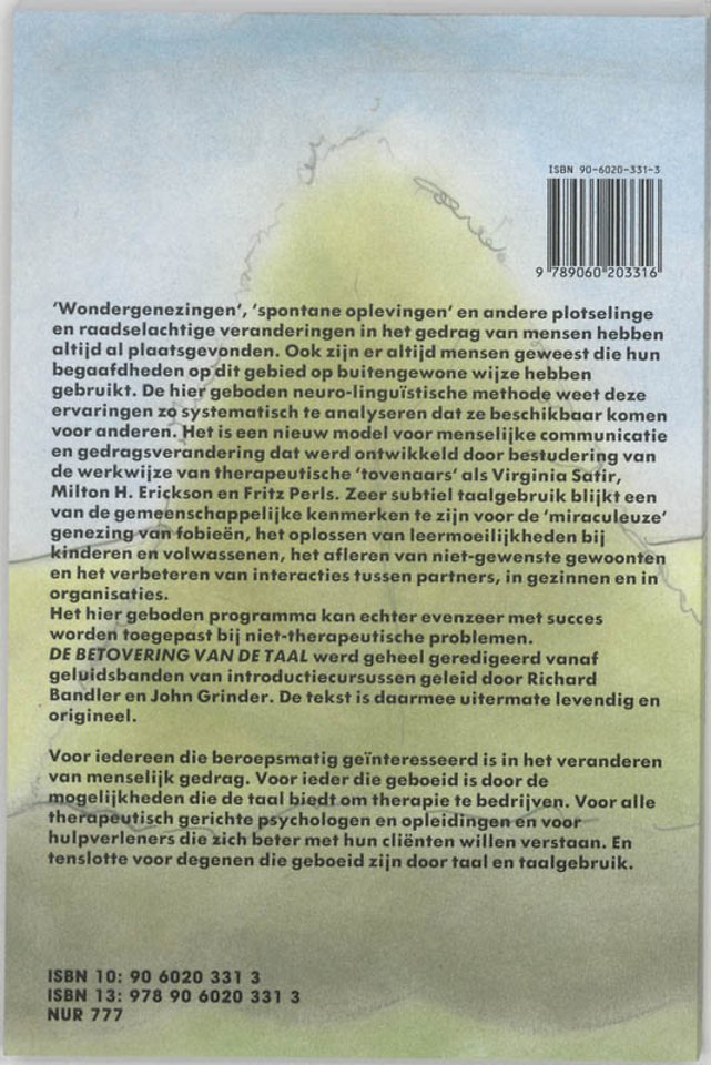Zeer subtiel taalgebruik blijkt een van de gemeenschappelijke kenmerken te zijn voor de 'miraculeuze' genezing van fobieën, het oplossen van leermoeilijkheden bij kinderen en volwassenen, het afleren van niet-gewenste gewoonten, en het verbeteren van interacties tussen partners, in gezinnen en in organisaties. Het hier geboden programma kan ook met succes worden toegepast bij niet-therapeutische problemen.
