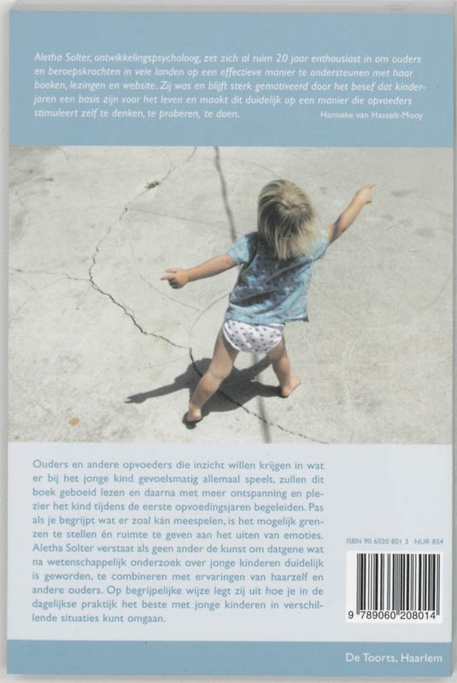 Ouders en opvoeders die inzicht willen krijgen in wat er bij het jonge kind gevoelsmatig allemaal speelt, zullen dit boek geboeid lezen en daarna met meer ontspanning en plezier het kind tijdens de eerste opvoedingsjaren begeleiden. Pas als je begrijpt wat er zoal kan meespelen, is het mogelijk grenzen te stellen en ruimte te geven aan het uiten van emoties. Aletha Solter verstaat als geen ander de kunst om datgene wat na wetenschappelijk onderzoek over jonge kinderen duidelijk is geworden, te combineren met ervaringen van haarzelf en andere ouders. Op begrijpelijke wijze legt zij uit hoe je in de dagelijkse praktijk het beste met jonge kinderen in verschillende situaties kunt omgaan.