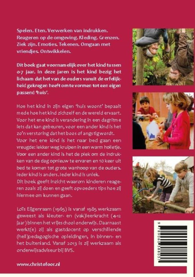 Dit boek gaat over kinderen in de leeftijd van 0 tot 7 jaar. Het kind werkt gedurende deze jaren fysiologisch gezien aan zijn lichaam om het tot een geschikte eigen behuizing om te werken. Hoe dat proces verloopt, bepaalt mee het levensgevoel van het kind. De één vindt een verandering van het dagritme prima, de ander voelt zich verstoord of onzeker. Het ene kind gaat graag naar bed en kruipt zijn holletje in, de ander komt er tien keer uit en verteert luidop alle indrukken van de voorbije dag.