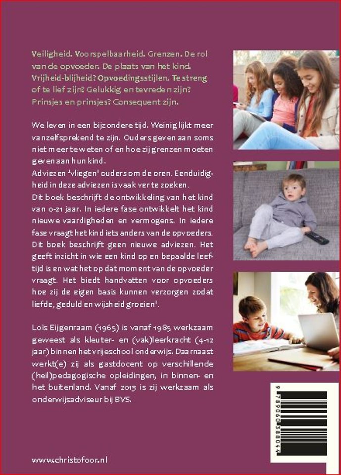 Dit boek beschrijft de ontwikkeling van het kind van 0-21 jaar. In iedere fase ontwikkelt het kind nieuwe vaardigheden en vermogens. In iedere fase vraagt het kind iets anders van de opvoeders. Als opvoeders in staat zijn liefdevolle begrenzing te geven dan is dat een basis voor een gezonde ontwikkeling, zowel voor het kind, de ouder en andere relaties waar zij mee te maken hebben.