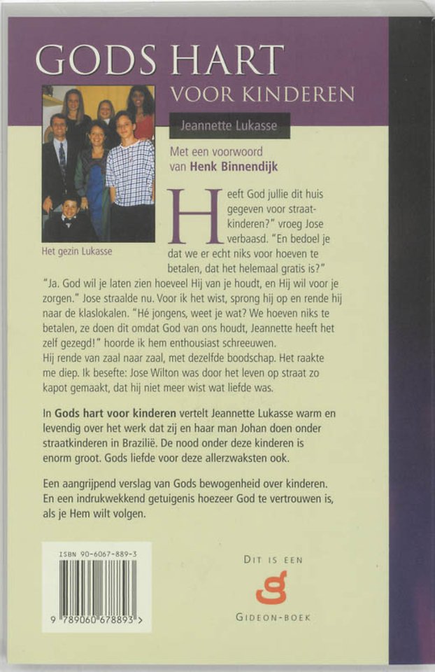 In Gods hart voor kinderen vertelt Jeannette Lukasse warm en levendig over het werk dat zij en haar gezin doen onder straatkinderen in Brazilië. De nood onder deze kinderen is enorm groot. Gods liefde voor deze allerzwaksten ook.