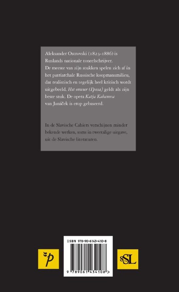Aleksander Ostrovski (1823-1886) is Ruslands nationale toneelschrijver. De meeste van zijn stukken spelen zich af in het patriarchale Russische koopmansmilieu, dat realistisch en tegelijk heel kritisch wordt uitgebeeld. 'Het onweer' ('') geldt als zijn beste stuk. De opera 'Katja Kabanova' van Janácek is erop gebaseerd.