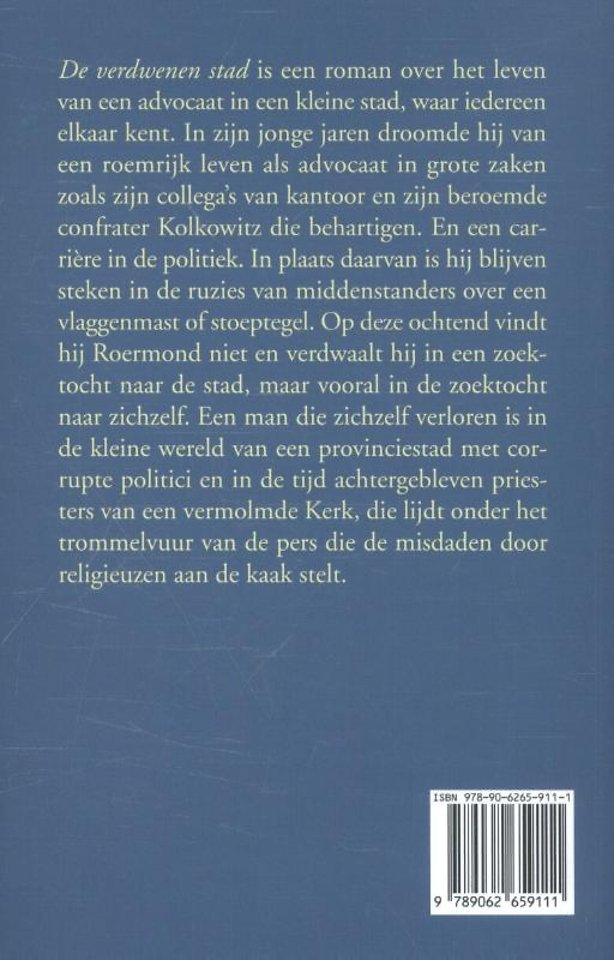 De verdwenen stad is een roman over het leven van een advocaat in een kleine stad, waar iedereen die meent er toe te doen elkaar kent. In zijn jonge jaren droomde hij van een roemrijk leven als advocaat in grote zaken zoals zijn collega's van kantoor en zijn beroemde en beruchte confrater Kolkowitz. En een succesvolle carrière in de politiek. In plaats daarvan is hij blijven steken in de ruzies van middenstanders over vlaggenmasten of stoeptegels.