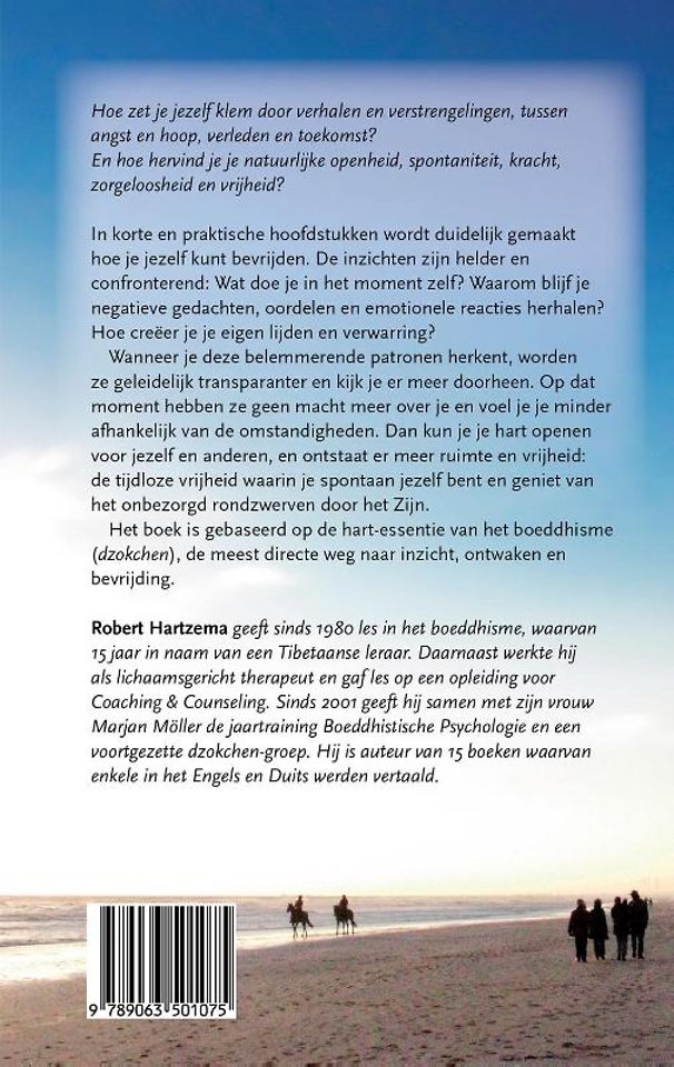 In korte en praktische hoofdstukken wordt duidelijk gemaakt hoe je jezelf kunt bevrijden. De inzichten zijn helder en confronterend: Wat doe je in het moment zelf? Waarom blijf je negatieve gedachten, oordelen en emotionele reacties herhalen? Hoe creëer je je eigen lijden en verwarring?