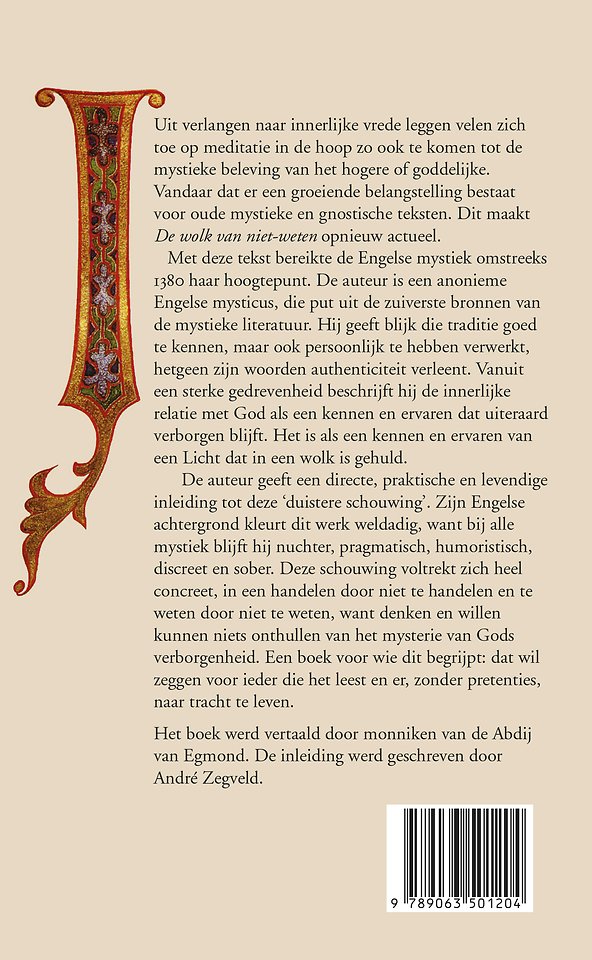 Uit verlangen naar innerlijke vrede leggen velen zich toe op meditatie in de hoop zo ook te komen tot de mystieke beleving van het hogere of goddelijke. Vandaar dat er een groeiende belangstelling bestaat voor oude mystieke en gnostische teksten. Dit maakt De wolk van niet-weten opnieuw actueel.