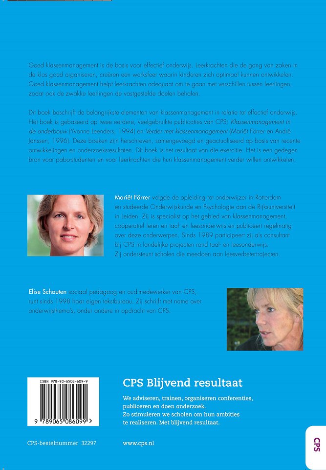 Waar kan ik die drukke leerling het beste plaatsen? Welke regels en routines gelden in mijn klas? Hoe zorg ik ervoor dat ik zwakke lezers extra instructie en oefening kan geven? Dit boek beschtijft de belangrijkste elementen van klassenmanagement. Het is een rijke basisbron voor pabo-studenten en beginnende leerkrachten, maar is ook relevant voor ervaren leerkrachten die hun klassenmanagement verder willen ontwikkelen. Het belang daarvan is evident, want goed klassenmanagement is de basis van effectief onderwijs.